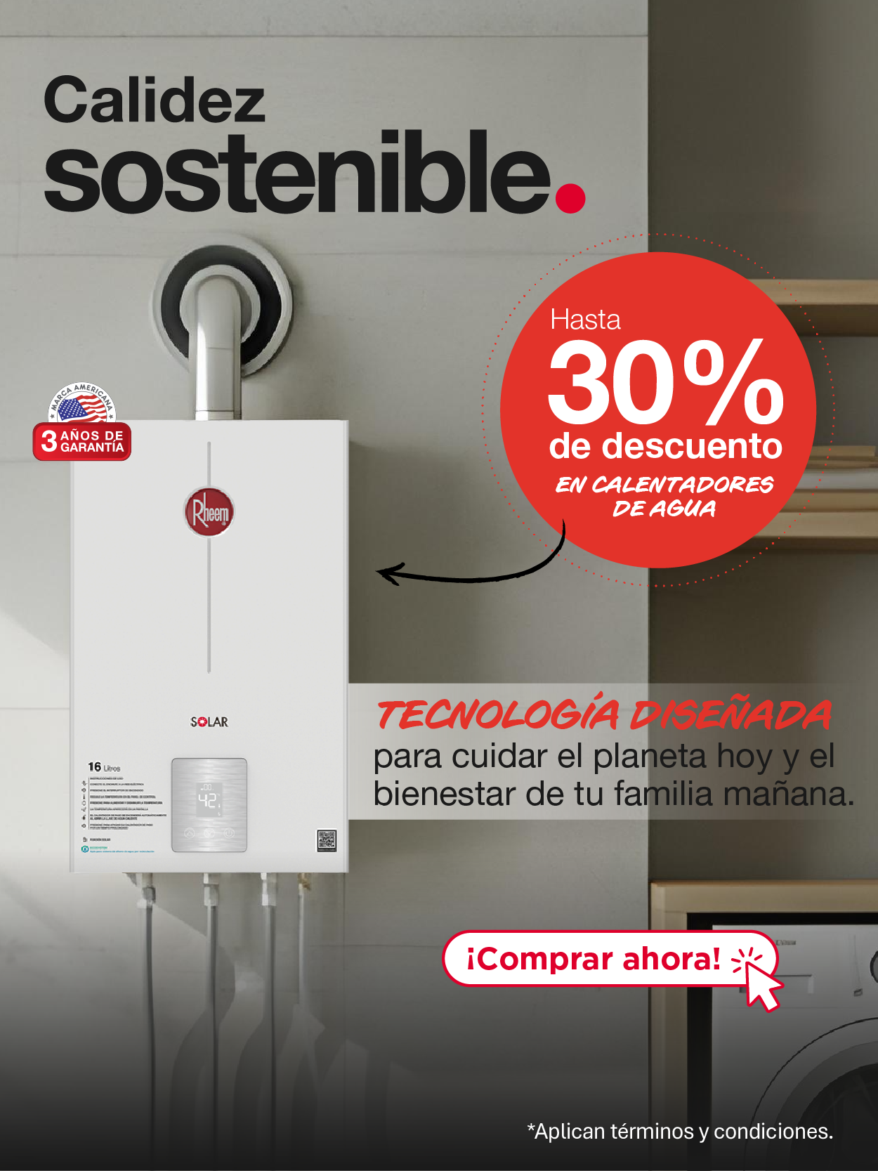Calentadores de Paso a GasCalentadores de Acumulación Gas o EléctricoCalentadores Rheem eficiencia y confort 3 años de Garantía descuentos calentadores rheemBANNERPRINCIPALCOLECCIONMOBILE750X835BANNERPRINCIPALCOLECCIONMOBILE750X8351 ¿Qué estas buscando? Encuentra el producto ideal para ti Calentador de paso a gas Calentador de paso eléctrico Calentador de Acumulación Líder mundial en fabricación y comercialización de soluciones en agua caliente y climatización